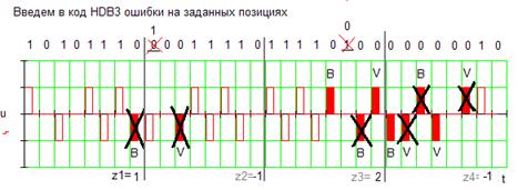 | HDB-3 с ошибками | 1 | -1 | 2 | -1 | 1 |