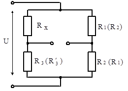 за схемою моста постійного струму (рис. 2.5), для якої результат вимірювання визначається з умови рівноваги