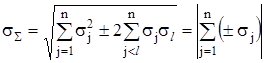 В основу підсумовування випадкових складових похибки вимірювань покладена властивість дисперсії для суми залежних випадкових величин, яка стосовно похибок записується так: