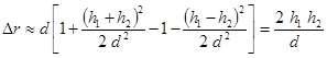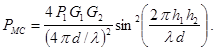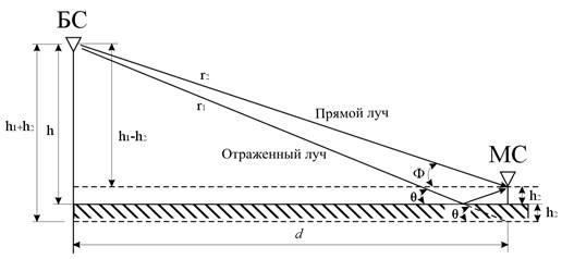 где h1 и h2 - высоты установки антенн БС и МС соответственно; d-расстояние от БС до МС.
