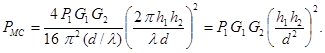 Мощность сигнала на входе МС приемника может быть рассчитана по формуле