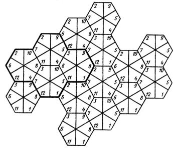 Рисунок 2.3– Модель повторного использования частот при К=4 и при использовании на каждой БС шести 60-градусных антенн