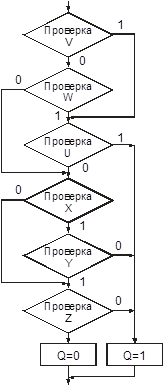 Предположим, что U и V являются входными выводами некоторого порта, W и Х – биты состояния двух периферийных контроллеров, a Y и Z – программные флаги, ранее установленные в программе. Окончательный результат должен выдаваться на выходной вывод порта.