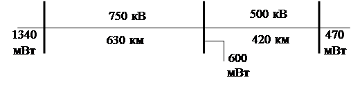 Рис 1.1. Вариант 1 схемы участков электропередачи.
