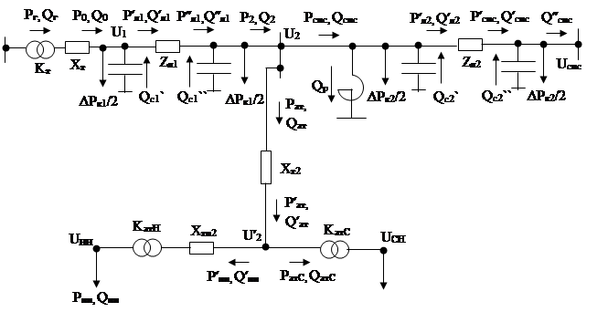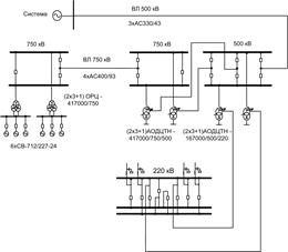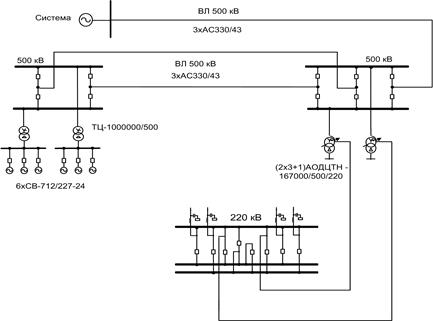 Рис.2.1 Схемаэлектрических соединений для первого варианта электропередачи.