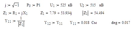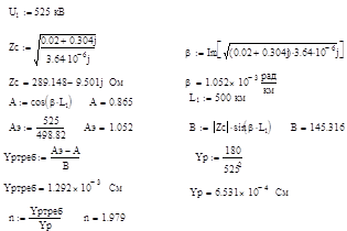 Для понижения напряжения на холостом конце головного участка ставим там реакторы. Yр = 180/5252 = 6,53∙10–4 См
