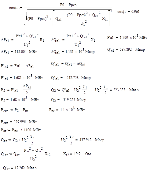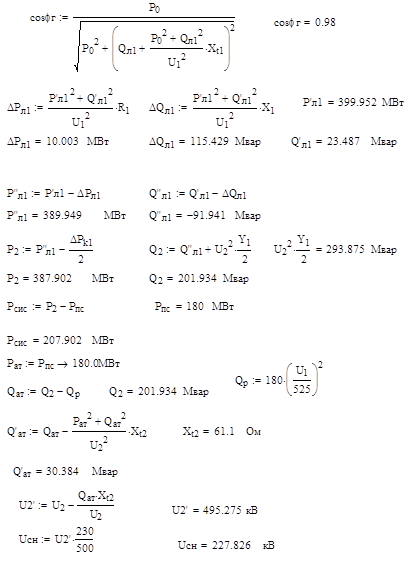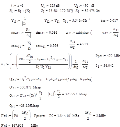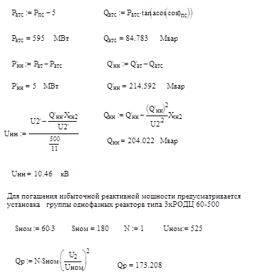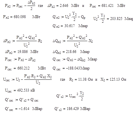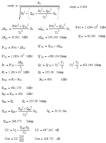 U2 =497,87кВ, PC =559,3МВт, QC =10,56Мвар