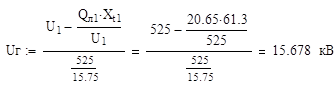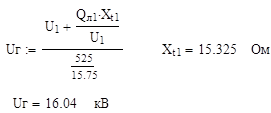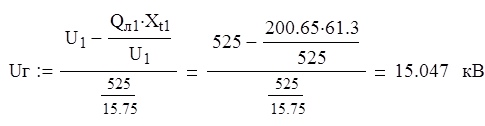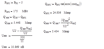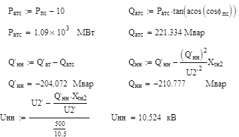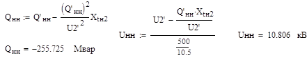 Uнн = [U′2 – Q′нн ∙Хтн2 / U′2 ]∙11/500 = [483,81 – 45,67∙37,8/483,81]∙11/500 =10,56 кВ