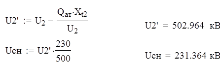 U′2 = U2 – Qат ∙Хт2 / U2 = 498,87 – 377,5 ∙19,9/498,87 = 483,81 кВ