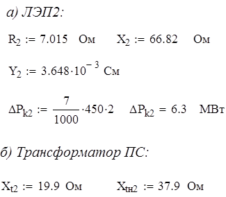 Δ Рк = 0,7 МВт, ΔРх = 0,28 МВт, Хт н = 309 Ом, Хт в = 55,1 Ом.