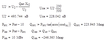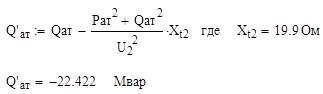 Q′ат = Qат – [Рсис 2 + Qат 2 ]∙ Хт2 / U2 2 = 377,5 – [1112,85 2 + 377,5 2 ]∙19,9/ 498,872