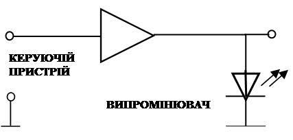 Керуюче коло передавача повинно приймати дані визначеного логічного рівня. Після обробки цифрових сигналів, що надійшли, формується вихідний сигнал для керування джерелом. Наприклад, він може перетворити 0.5 В и 5В TTL-сигналу в 0 мА і 50 мА, необхідні для включення і вимикання джерела.