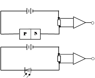 фотодіод, схематично зображений на рис. 4. Даний вид фотодіода достатньо рідко зустрічається у волоконній оптиці. Він буде використовуватися як основа для розгляду принципу роботи напівпровідникового фотодіода.