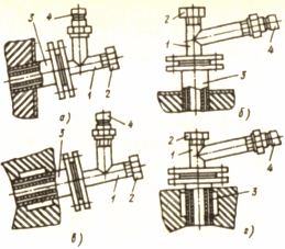 Рис.7.3. Заземлення броні кабелю (а ) і екрануючої оплетки (б, в): 1 — зануляющий провідник, 2 —- бандаж із мідного дроту, 3 — мідналуджена смужка, 4 — паянняприпоєм ПОС-61