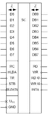 | 12 | SR | Вход | Установка в исходное состояние, сброс триггеров разрешения прерывания и захвата шины |