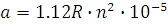 де R – відстань від осі обертання до контрольної точки (центру тяжіння випробуваного виробу), см; а – лінійне прискорення, g; n – частота обертання платформи центрифуги, хв-1 .