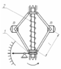 В коническом тахометре на шарнирах, вращающихся вместе с осью, установлены грузы m , которые под действием центробежных сил расходятся, перемещая вдоль оси муфту 1 и сжимая пружину 2.