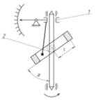 В кольцевом тахометре при не вращающейся оси (щ = 0) плоскость кольца наклонена по отношению к оси на угол а0 (рисунок 3). При вращении оси кольцо стремиться занять положение, перпендикулярное оси вращения, однако этому препятствует пружина 2. Перемещение муфты 1 пропорционально приращению угла отклонения кольца