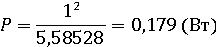 Учитывая, что напряжение питания катушки 1В, вычислим мощность, идущую на нагрев катушки, по формуле (33)