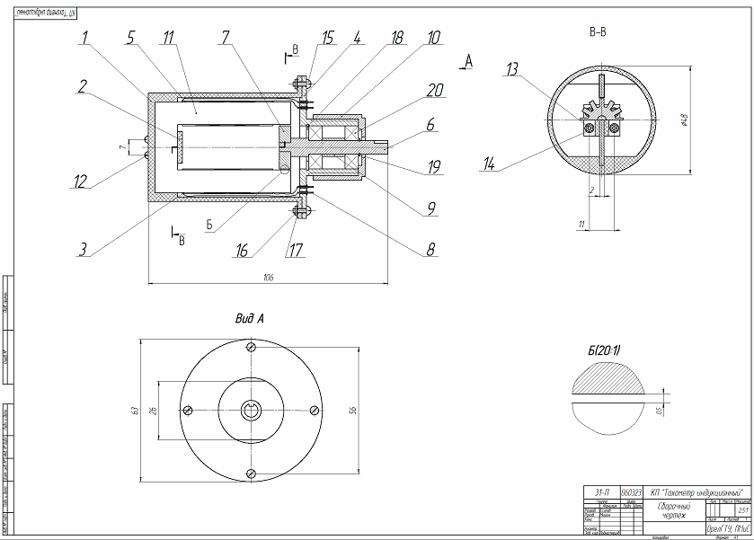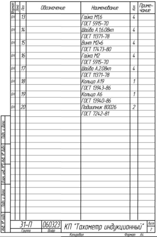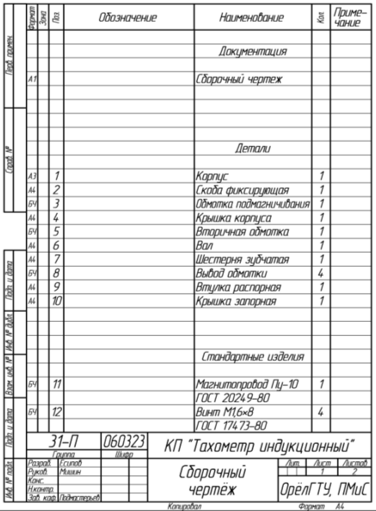 В работе произведены расчеты основных параметров и элементов конструкции индукционного тахометра. На основании расчетов создан сборочный чертеж и деталировка. По результатам проектирования были сделаны выводы, которые занесены в заключение.