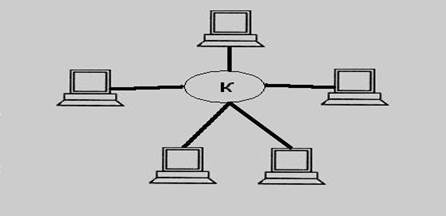 Мы уже с вами рассматривали иерархическую структуру построения, так вот топология сети звезда является как бы частным случаем данной структуры. Т.е. в центре стоящее устройство выполняет функции коммутатора (switch): соединяет компьютеры друг с другому, естественно после подачи сигнала одним из них.
