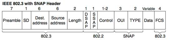 При приеме данных, приемник должен знать, какой из сетевых протоколов должен получить входящие данные (например, IP). Для этого и предназначено набор этих полей SNAP – Sub Network Access Protocol (протокол доступа к подсетям).