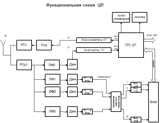 Непрерывные сообщения, преобразованные в цифровую форму, передаются на Ц.П. пакетом длительностью 40 сек. по многоканальной коммутируемой радиолинии по запросу объекта