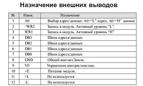 Контрастность индикатора зависит от напряжения питания модуля. Управление контрастностью производится подключением внешнего резистора на вывод V0.