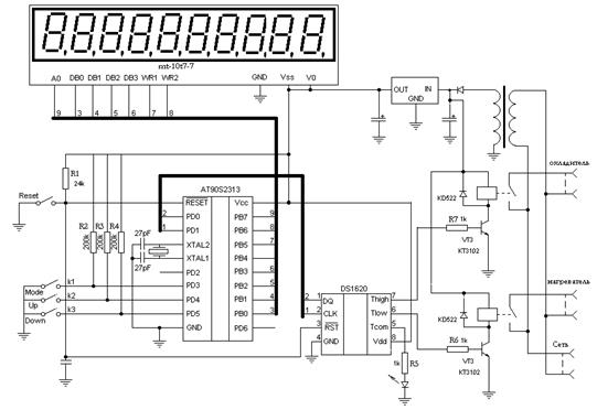 на базе микроконтроллера AТ90S2313 с применением термостата DS1620»