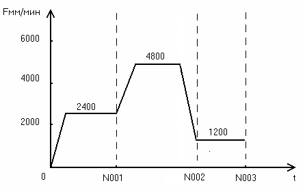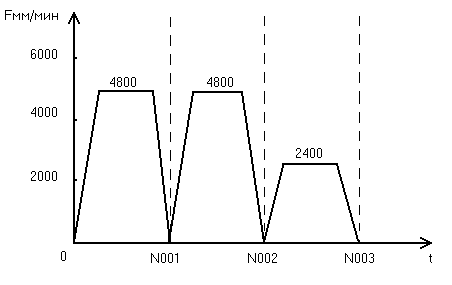Рабочая подача может достигать 4800 мм/мин. В блоке задания скорости предусмотрен автоматический разгон и торможение рабочего органа станка, а также автоматическое вычисление тормозного пути в соответствии с заданной скоростью. Время разгона в пределах от 1,1 до 2,1 сек.
