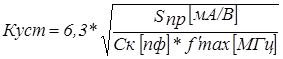 fmax – максимальная частота на которой будет работать транзистор, Гц