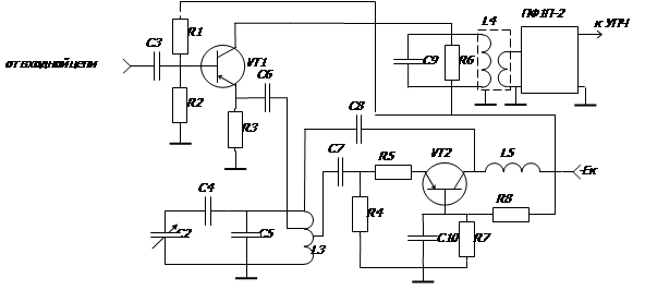 а) Определяем коэффициенты включения контура к транзисторам p1и p2. Выбираем полное включение контура со стороны коллектора (p1 =1), тогда коэффициент включения со стороны базы: