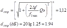 Определяем эквивалентную добротность контуров преселектора Qэ