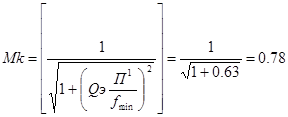 Определяем фактически вносимые частотные искажения Mk контурами преселектора: