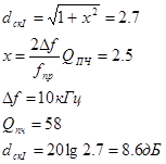 Определяем ослабление канала промежуточной частоты контурами преселектора