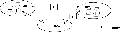 При обмене данными как между ПК в ЛВС, так и между ЛВС любое информационное сообщение разбивается программами передачи данных на небольшие блоки данных, которые называются пакетами