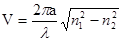 По этой величине можно судить о режиме работы оптического волокна. Если V £ 2,045, то в нем распространяется только одна основная мода HEII. Если V > 2,045, то имеет место многомодовый режим работы.