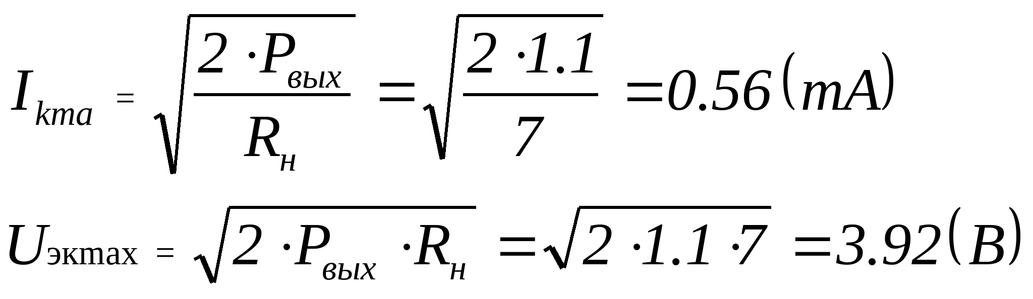 Uкэ= Еп/2=9/2=4,5 (B) Iк=Еп/2Rн=9/(2*7)=0,64 (A)