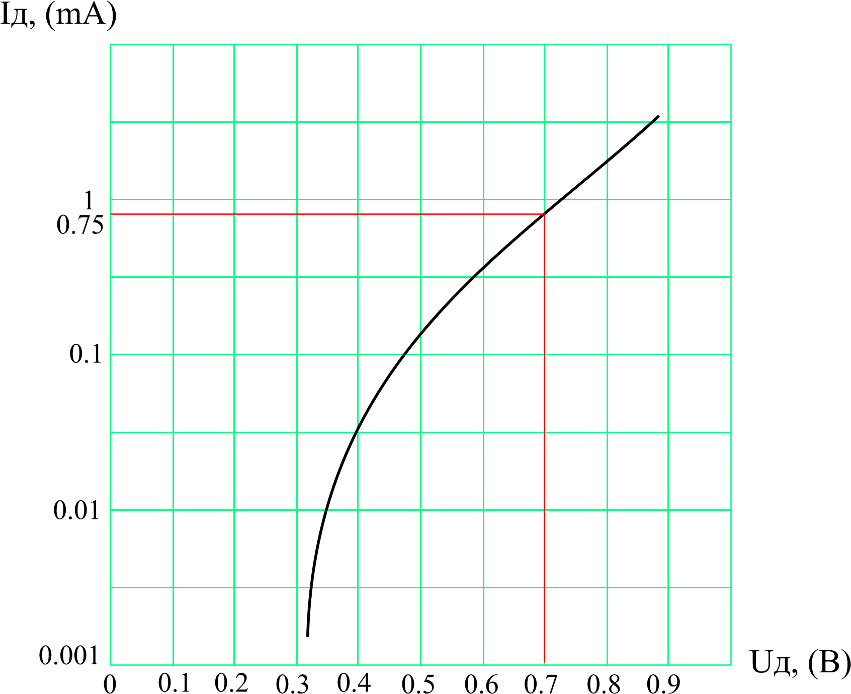 Iдиода= Iдел+Iб0; Iдиода=0,75+0,25=1 (mA)