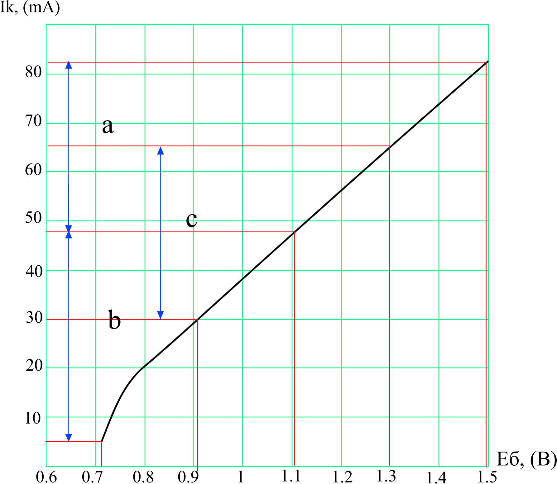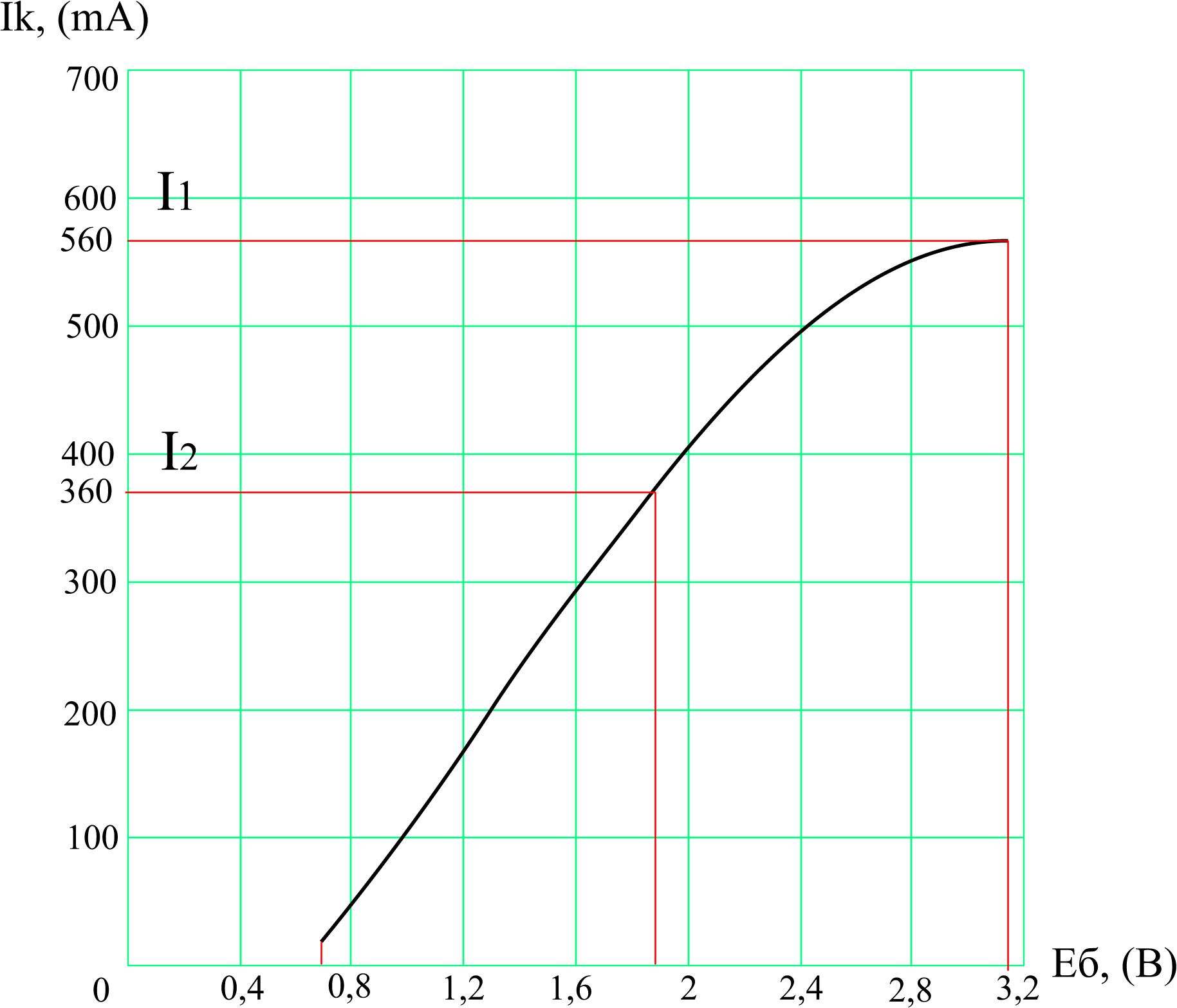| Iб, (mA) | Iк, (mA) | Uэб, (B) | Iб* Rг (B) | Eб= Iб * Rг + Uэб, (B) |