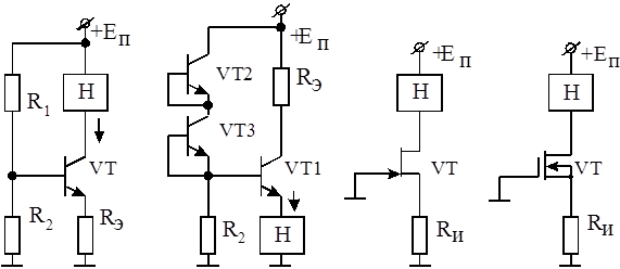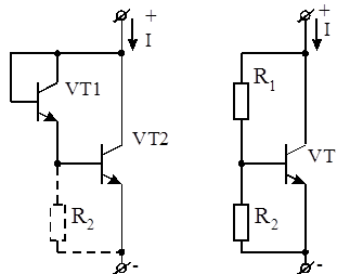 – напряжения база – эмиттер Т). Иногда с целью повышения тока Т VT1 дополнительно вводят шунтирующее сопротивление