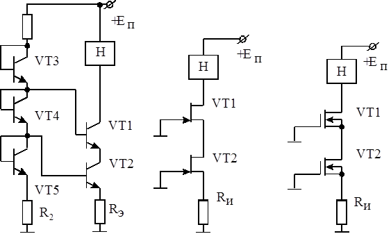 ) или нескольких диодов. Иногда ГСТ, в которых ток вытекает из нагрузки, называют “поглотителями” тока, а со втекающим током – источниками(см. рис.1, а, б).