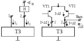 , в ТЗ вводят буферный Т VT3 (рис.3, б), который уменьшает разность токов в