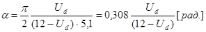 Сделаем вывод. Микропроцессор для измерения диаметра делает такие шаги. Зная Ud в виде кода, находит угол a в радианах – формула (4). Зная a, находит диаметр d – формула (5).