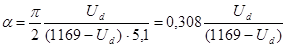 Напряжение с датчика Ud в системе измеряется с помощью 10-разрядного АЦП, рассчитанного на максимальное входное напряжение 10,5 В. Микропроцессор читает с АЦП не напряжение в вольтах, а его код – число в диапазоне [0..3FFH ]=[0..102310 ]. Поэтому формулу (3) надо изменить, преобразовав напряжение 12 вольт в такой же код, исходя из интервала дискретности АЦП. Он равен д=10,5/1023=1,026×10-2 В. Отсюда 12 вольт будет изображаться величиной 12/ д »1169 единиц.
