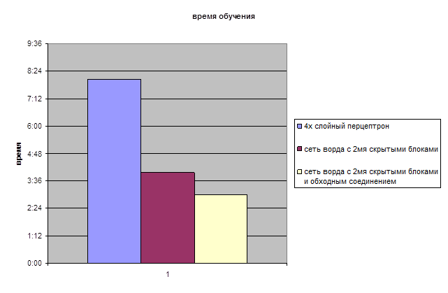 На данной диаграмме показаны сравнительные данные по времени обучения рассмотренных сетей.