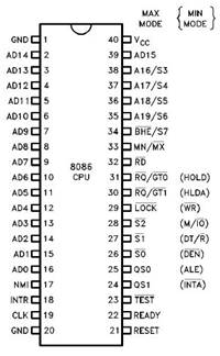 Схема цоколевки микроконтроллера i8086 приведена на рис.2