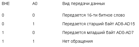 BHE – разрешение старшего байта. Работает совместно с сигналом А0, обеспечивая механизм передачи информации по ШД