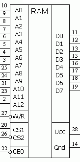 | W/R | CS1 | CS2 | OE | A0..12 | D0..7 | Режим |