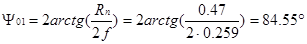 Вычислим углы раскрыва рупора: